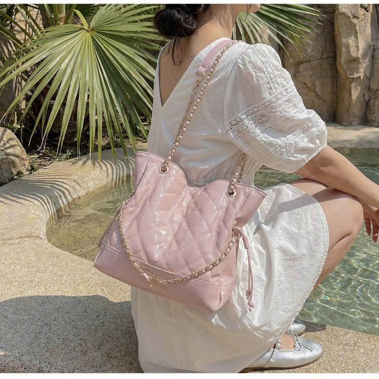 Túi xách nữ thiết kế chần trám sang trọng, form mềm mại thời trang. Dây đeo phối xích kim loại tạo điểm nhấn nổi bật